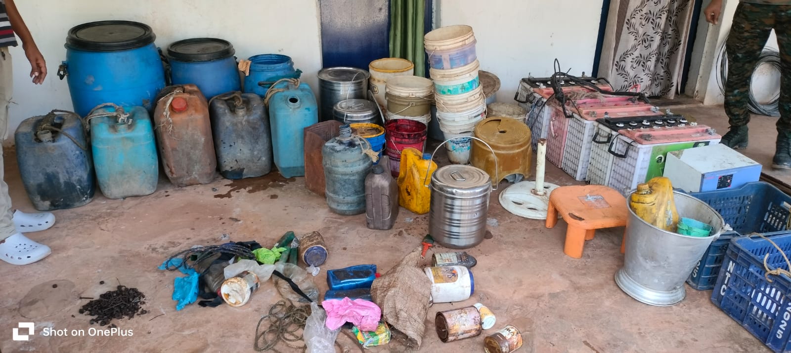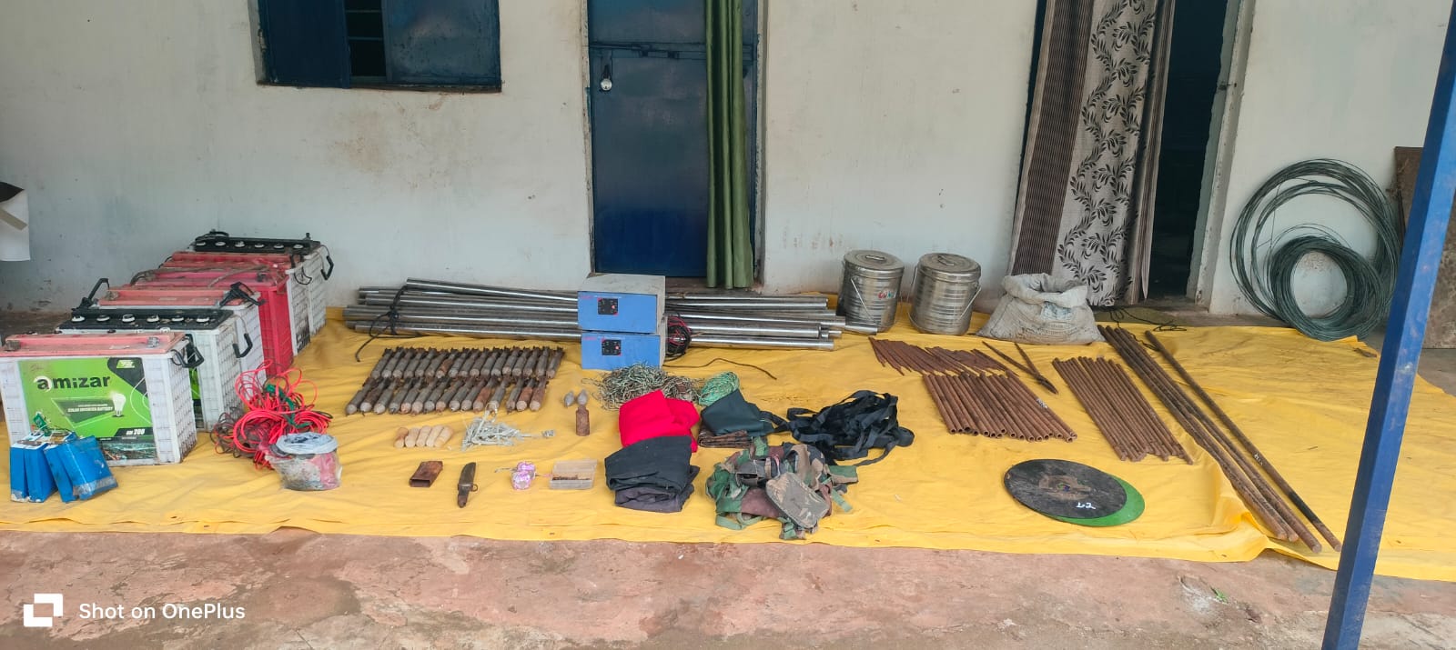 पुलिस अधिकारियों ने बताया कि बरामद सामग्री में गन पाउडर, बीजीएल राउंड, आरडीएक्स, इलेक्ट्रिक व नॉन-इलेक्ट्रिक डेटोनेटर, इम्प्रोवाइज्ड तीर बम, ग्रेनेड, आयरन रॉड, कटर, स्टील पाइप, बैटरी, सोलर इन्वर्टर, तार, कॉम्बैट ड्रेस, माओवादी वर्दी व अन्य उपकरण शामिल हैं।