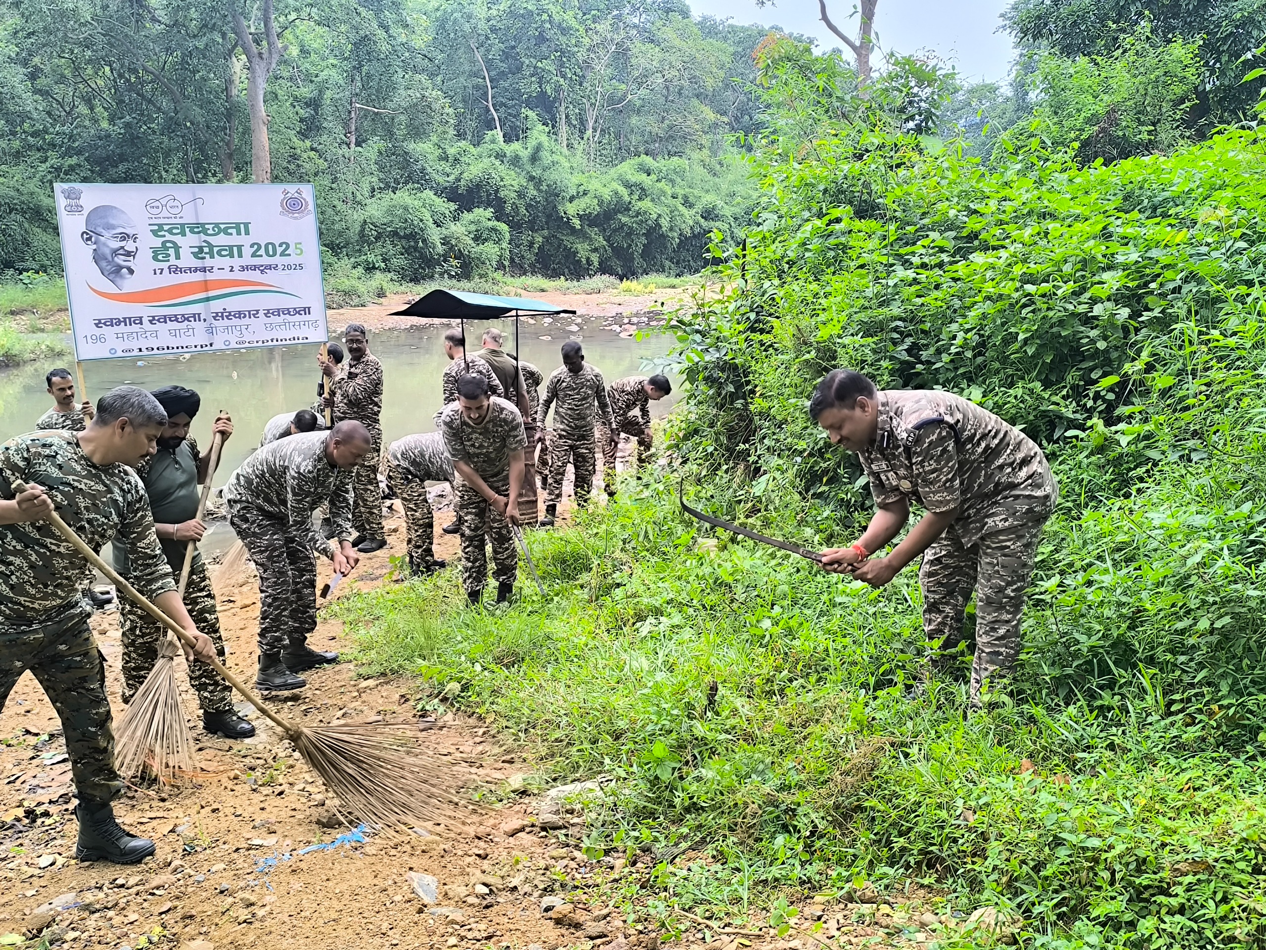 बीजापुर(हिन्दसत)। गांधी जयंती के अवसर पर 196 बटालियन वाहिनी मुख्यालय, महादेव घाटी बीजापुर में विशेष स्वच्छता अभियान का आयोजन किया गया। इस पहल का उद्देश्य जन-भागीदारी के माध्यम से स्वच्छता के महत्व को समझाना और “स्वच्छ भारत, स्वस्थ भारत” के संकल्प को मजबूत करना था।