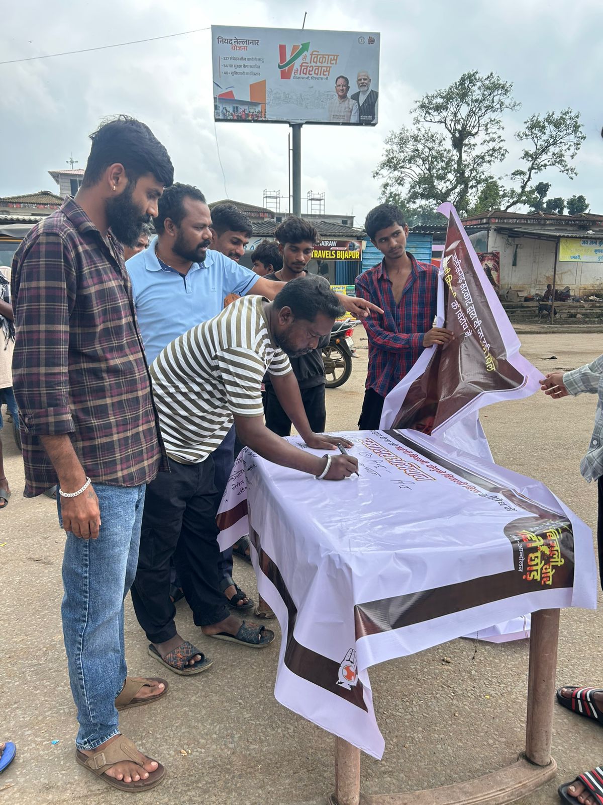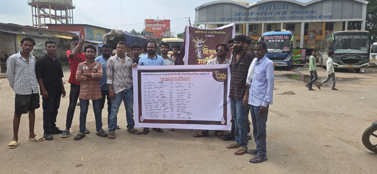 बीजापुर (हिन्दसत)। छत्तीसगढ़ प्रदेश युवा कांग्रेस के निर्देशानुसार युवा कांग्रेस बीजापुर द्वारा बीजापुर बस स्टैंड में बिजली दरों में बढ़ोतरी के विरोध में हस्ताक्षर अभियान एवं नुक्कड़ सभा का आयोजन किया गया। कार्यक्रम में आम नागरिकों ने बढ़-चढ़कर हिस्सा लिया और विरोध स्वरूप हस्ताक्षर कर अपना समर्थन जताया।