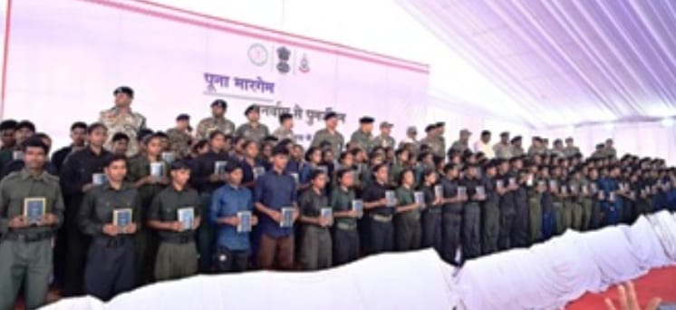 कार्यक्रम जगदलपुर पुलिस लाइन में आयोजित हुआ, जहां आत्मसमर्पित कैडरों का स्वागत मांझी-चालकी विधि से किया गया। सभी ने संविधान की शपथ ली और शांति, विकास व राष्ट्र निर्माण की दिशा में योगदान देने का संकल्प लिया।