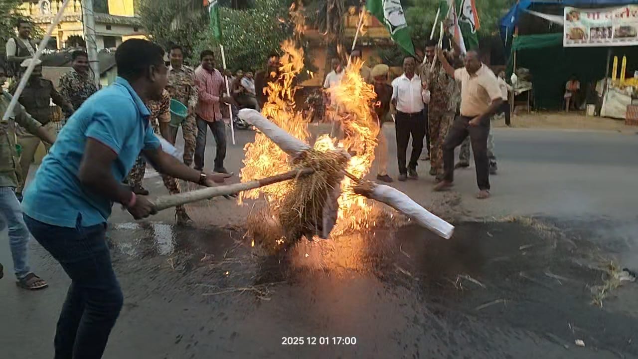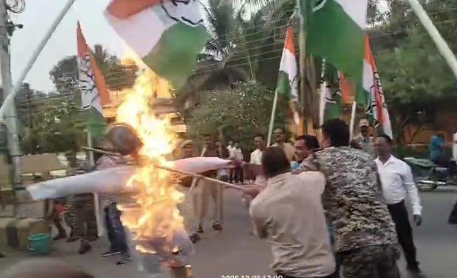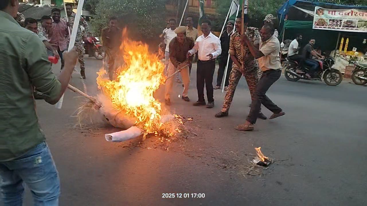 बीजापुर जिला कांग्रेस ने शिव मंदिर चौक में केंद्रीय गृह मंत्री का पुतला जलाकर जताया विरोध
