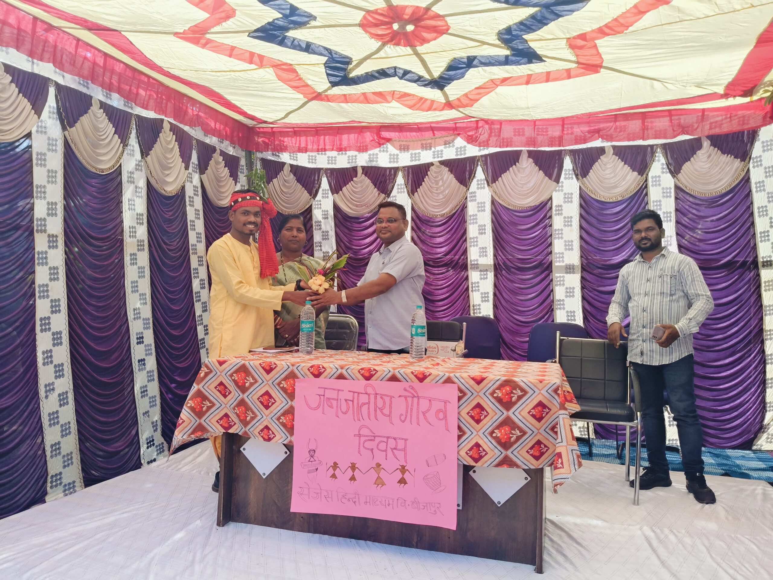 बीजापुर। जिला मुख्यालय स्थित प्री-मेट्रिक बालक छात्रावास बीजापुर में गुरुवार को जनजाति गौरव दिवस हर्षोल्लासपूर्वक मनाया गया। कार्यक्रम की अध्यक्षता स्वामी आत्मानंद हिंदी माध्यम की प्राचार्य सरिता दुब्बा ने की, जबकि मुख्य अतिथि के रूप में सर्व आदिवासी समाज के जिला सचिव एवं कंवर समाज के अध्यक्ष कमलेश्वर पैंकरा शामिल हुए।