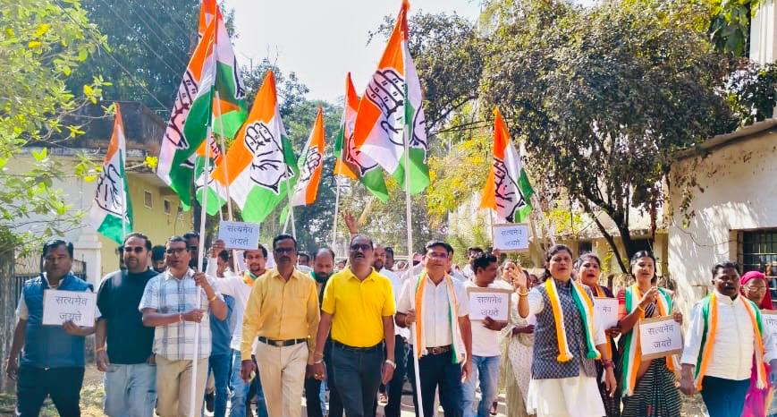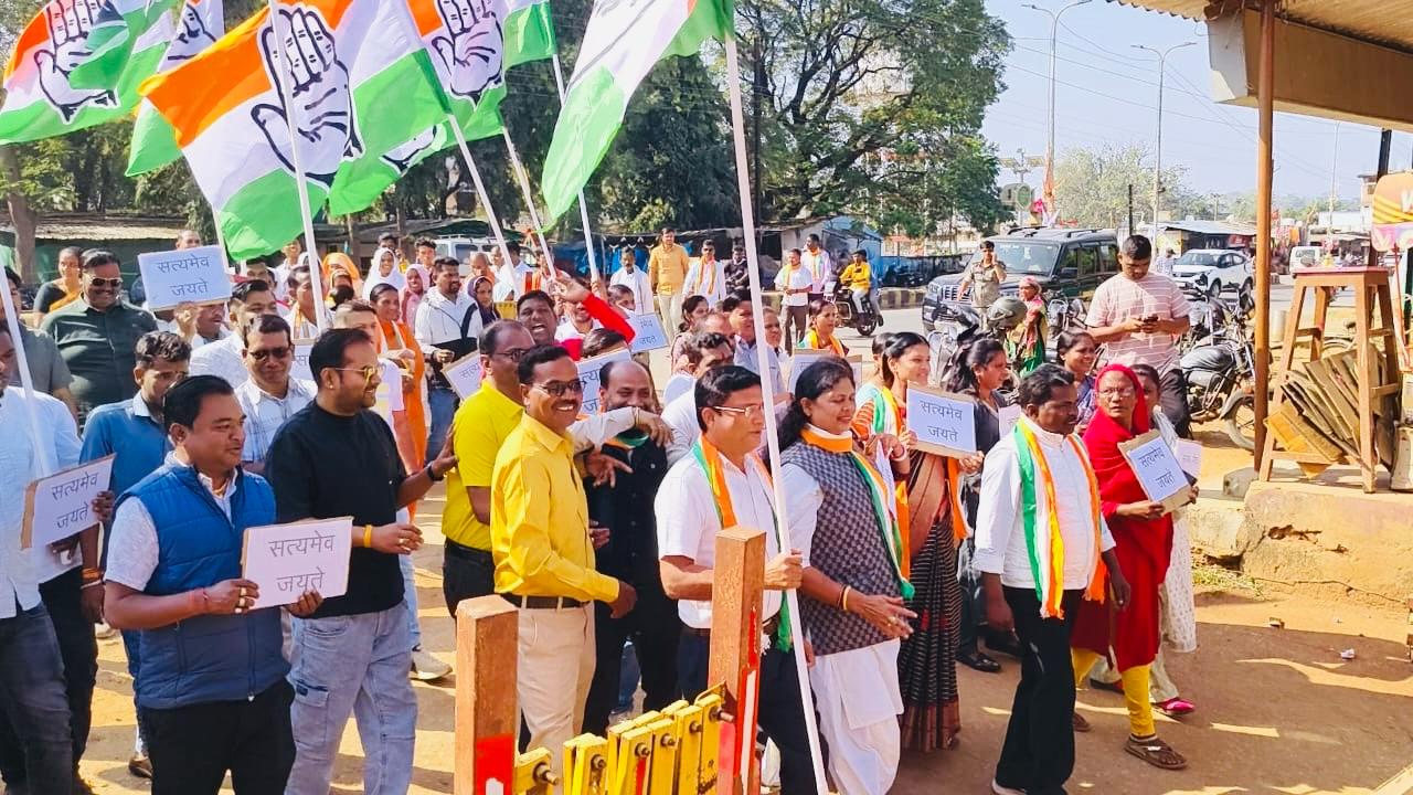 अदालत के फैसले के स्वागत में बीजापुर में कांग्रेस का प्रदर्शन, भाजपा कार्यालय का किया घेराव