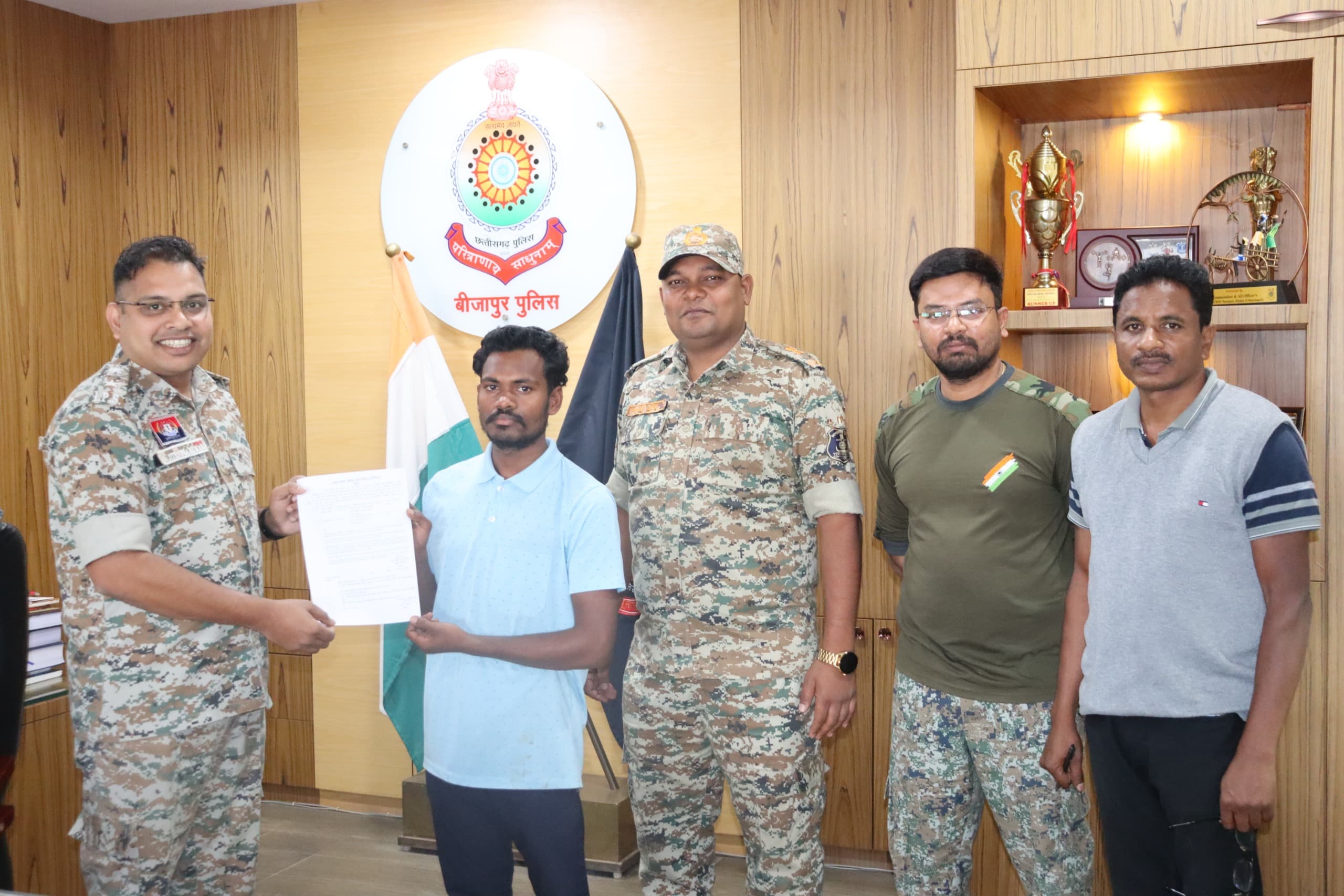 बीजापुर (हिन्दसत)। आरक्षक सीधी भर्ती 2023–24 के अंतर्गत चयन प्रक्रिया पूर्ण होने के पश्चात जिला बीजापुर में चयनित अभ्यर्थियों को नियुक्ति पत्र प्रदान किए जाने की प्रक्रिया जारी है। इसी क्रम में सोमवार को सीधी भर्ती से चयनित 03 अभ्यर्थियों को नियुक्ति पत्र प्रदान किए गए।
