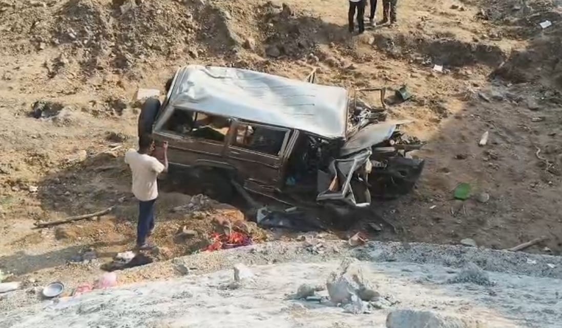 NH-30 पर दर्दनाक हादसा: मजदूरों से भरी बोलेरो नाले में गिरी, महिला की मौत