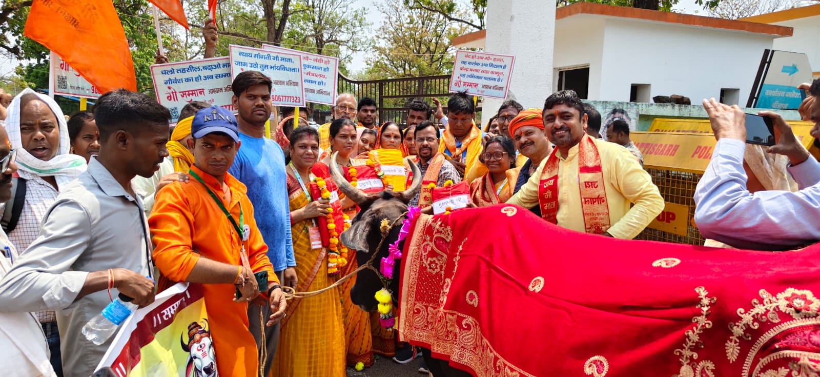 सोमवार को जिला मुख्यालय में गायत्री परिवार से जुड़े लोगों ने गाय और बछड़े के साथ रैली निकाली और कलेक्ट्रेट पहुंचकर बीजापुर एसडीएम जागेश्वर कौशल को राष्ट्रपति, प्रधानमंत्री और मुख्यमंत्री के नाम ज्ञापन सौंपा। अभियान के तहत जिले की सभी तहसीलों में घर-घर, मंदिरों और देवालयों में हस्ताक्षर कराए गए, जिसमें 10,847 लोगों ने समर्थन दिया। प्रतिनिधिमंडल ने एसडीएम के माध्यम से प्रार्थना पत्र सौंपते हुए गोवंश की सेवा, सुरक्षा और सम्मान सुनिश्चित करने की मांग की।
